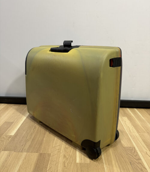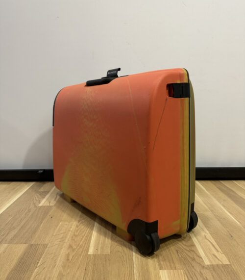 Koffer in Orange-Gelb mit Zahlenschloss von Carlton – robuster Trolley mit Vintage-Charme