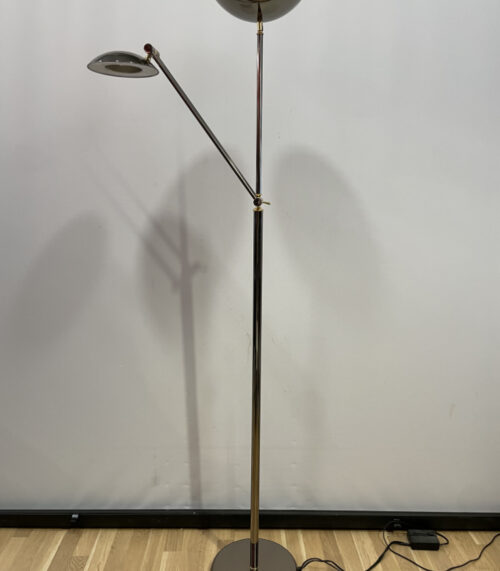 Verchromte Halogen-Stehleuchte mit Lesearm und Dimmer