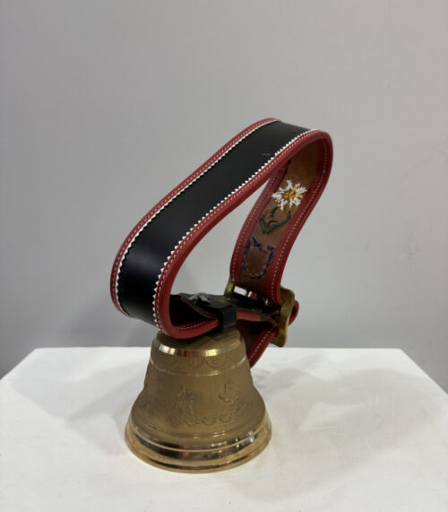 Traditionelle Schweizer Kuhglocke mit verziertem Lederband – Berger Giesserei 2001