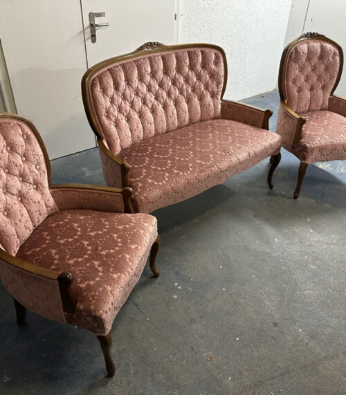 Barock Sitzgruppe mit Rosé-Stoff – 3-teilig