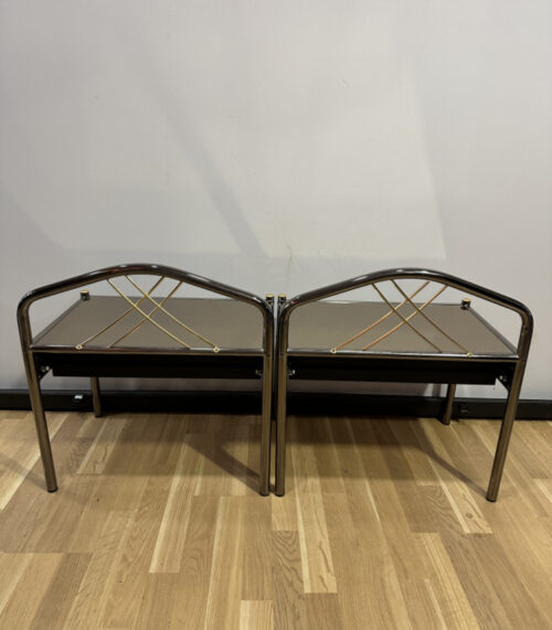 Spiegelnde Nachttische mit Chromgestell und goldenen Details – Art Deco trifft auf Glamour