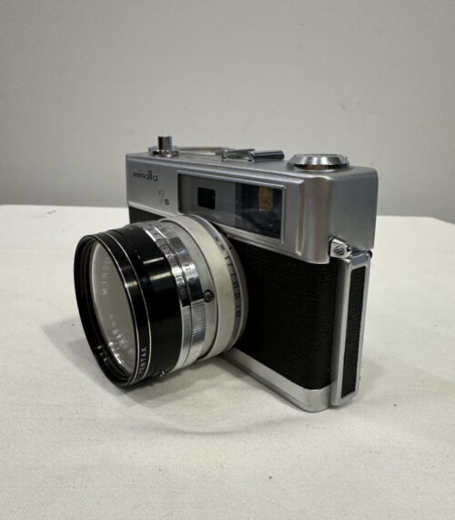 Minolta Hi-Matic 7s mit Rokkor-PF 45mm 1:1.8 Objektiv und Original-Ledertasche