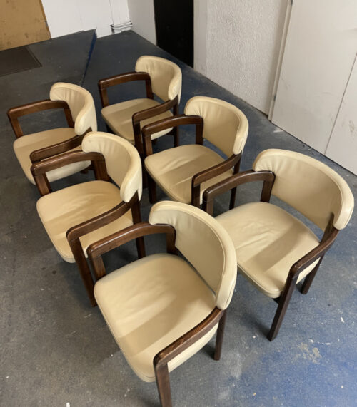 6er-Set Mid-Century Armlehnstühle von „Stühle aus Stein am Rhein“ – Eichenholz mit cremefarbenem Lederbezug