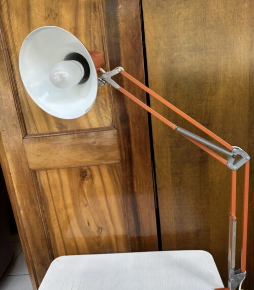 Orange Mid-Century Architektenlampe mit Gelenkarm und Tischklemme