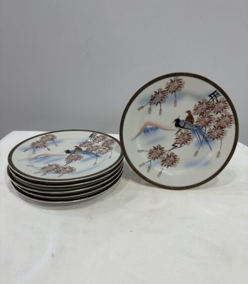 Japanisches Teeservice von Mori China – Handbemalt, mit Fuji-Dekor und Pfauen- und Kirschblütenmotiv