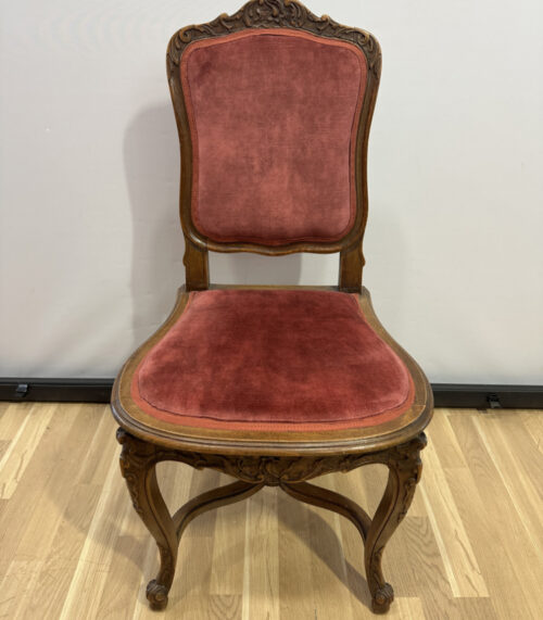 Antiker Louis Philippe Stuhl mit rotem Samtbezug und Schnitzornamenten