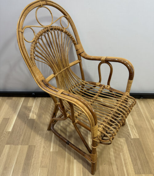 Vintage Rattan Sessel mit hoher Rückenlehne und dekorativen Rundbögen