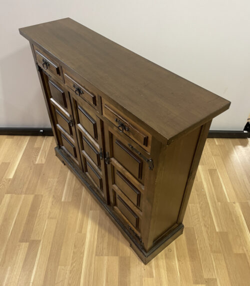 Spanisches Vintage Sideboard aus Holz – mit Drehtüren und Eisenbeschlägen