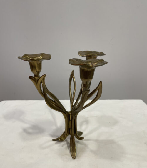 Vintage Kerzenständer aus Messing mit florales Design und höhe 21 cm
