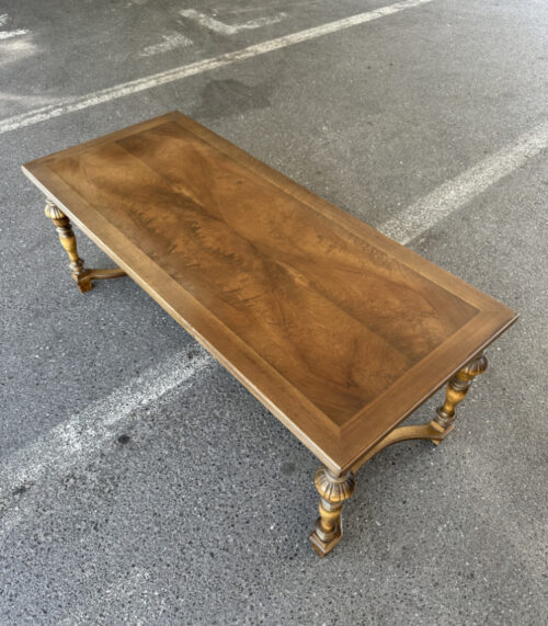 Vintage Couchtisch mit Intarsienplatte und gedrechseltem Fuss