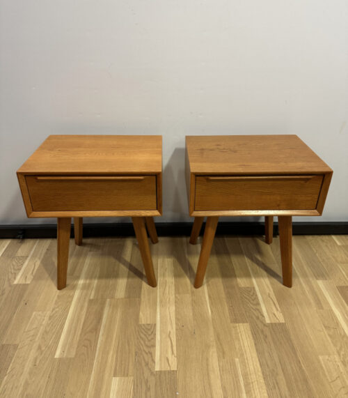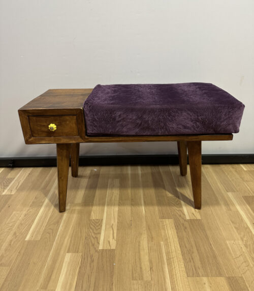 Telefonbänkli im Mid Century Stil aus Holz mit Schublade und violettem Polster
