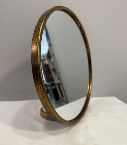 Vintage runder Wandspiegel mit vergoldetem Metallrahmen, Durchmesser 30 cm