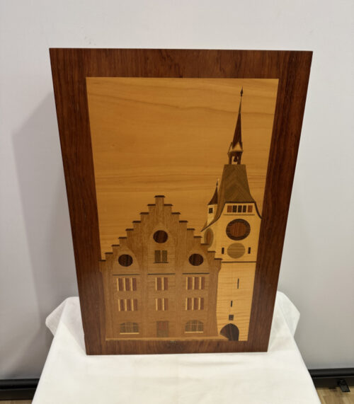 Intarsien Holz Wandbox mit Stadtmotiv und Fächern 40 x 60 cm