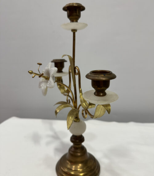 Vintage Kerzenhalter mit floralen Elementen – Messing, Glas und Alabaster kombiniert