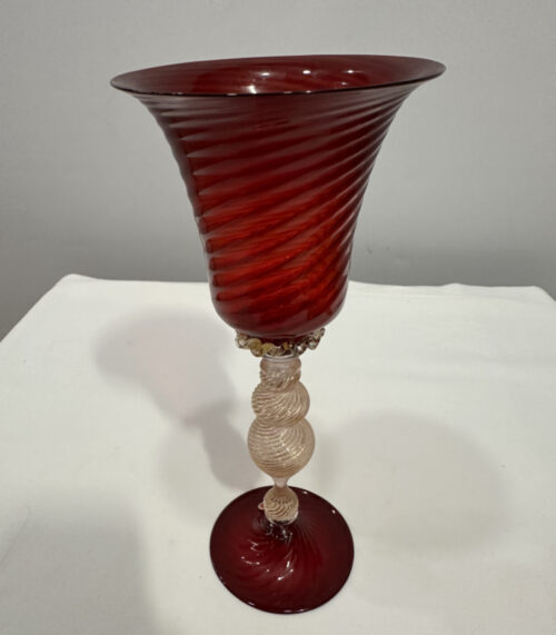 Murano Glas Kelch in Rubinrot mit Goldstaub, Made in Italy