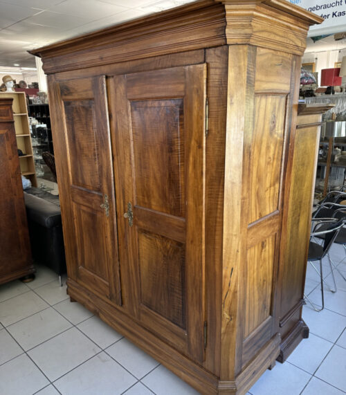 Antiker Biedermeier Bauernschrank aus Nussbaumholz um Jahr 1880 mit 216 cm Höhe