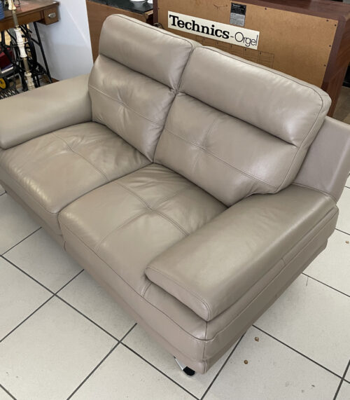 2er Sofa „Dylan“ aus Kunstleder in Taupe und verchromten Füssen