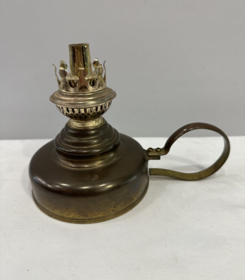 Antike Petroleumlampe aus Messing – mit seitlichem Griff und originalem Glasaufsatz