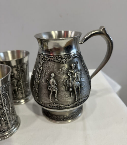 Zinn-Krug-Set von SKS Design – 7-teiliges historisches Trinkservice mit Reliefdekor