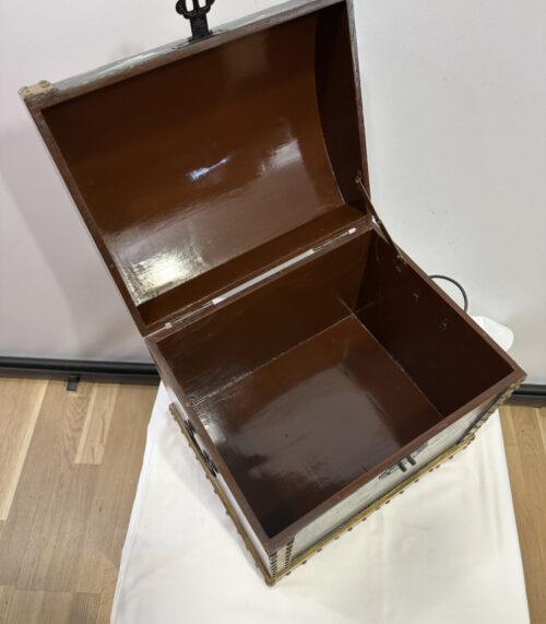 Bemalte Holztruhe mit Segelschiff Motiv mit Metallbeschlägen und Tragegriffen