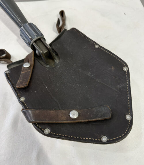 Klappspaten der Schweizer Armee mit Lederhülle, Albert Jung, Zuzwil SG 57