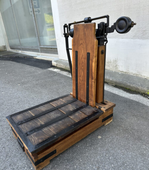 Antike Sackwaage mit Gusseisen und Holz – bis 150 kg