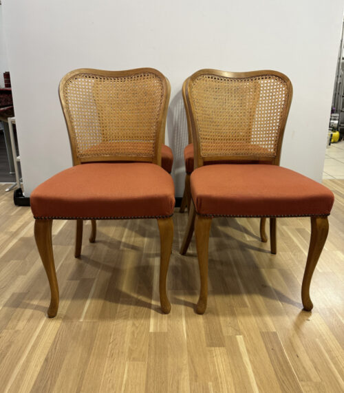 4er-Set Antike Spätbiedermeier Nussbaumholz Stühle mit Wiener Geflecht