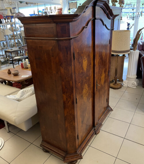 Vintage Barocker Bauernschrank mit Intarsien – zweitürig und mit geschweifter Krone
