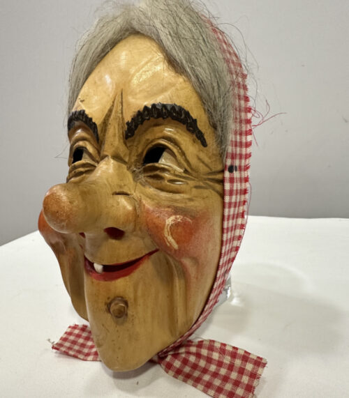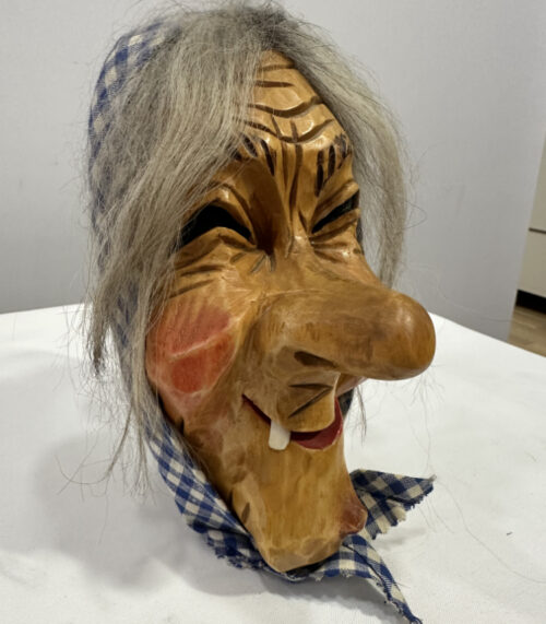 Krienser Fasnachtsmaske von Erwin Bösch – Hexe mit Kopftuch, datiert 1988