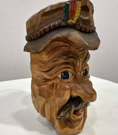 Geschnitzte Krienser Holzmaske mit Hut und Schnauz – signiert „HZ 85“
