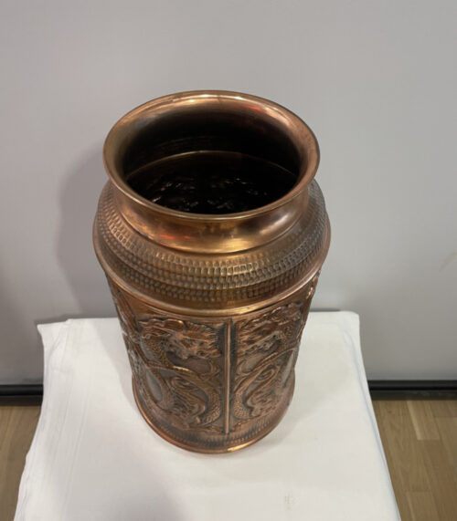 Vintage Kupfervase mit Löwen-Drachen-Motiv – Prunkvolles Reliefdesign