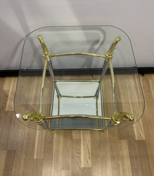 Eleganter Beistelltisch mit Glasplatte und vergoldetem Edelstahl – Vintage Design mit Spiegeleffekt