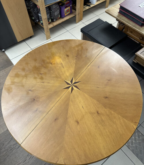 Antiker Louis-Philippe Esstisch – Runder Intarsientisch mit Stern-Dekor, ausziehbar