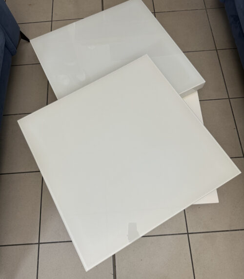 Moderner Couchtisch – Hochglanz-Weiss mit drehbarer Glasplatte