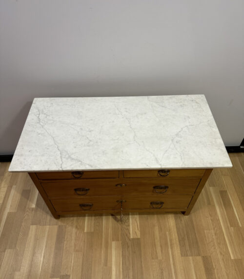 Antike Kommode aus Tannenholz mit Marmorplatte
