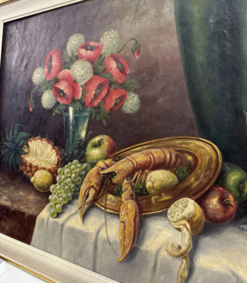 Ölgemälde von K.Winter Stilvolles Stillleben mit Hummer und Blumen 90 x 72 cm