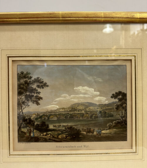 Original Kupferstich von Johann Baptist Isenring – Handkolorierte Darstellung von Schwarzenbach und Wyl