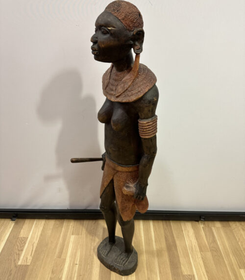 Handgeschnitzte Holzskulptur einer afrikanischen Frau mit höhe 127 cm