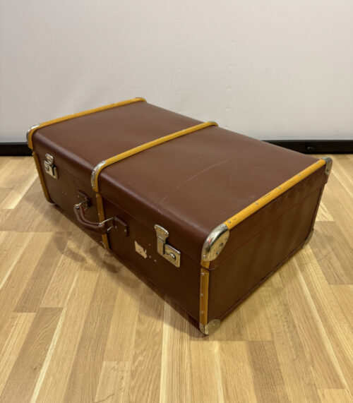 Vintage Koffer mit Holzelementen und kariertem Innenfutter