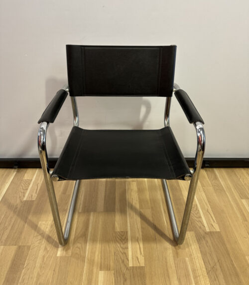 Vintage Freischwinger Stuhl mit schwarzem Leder