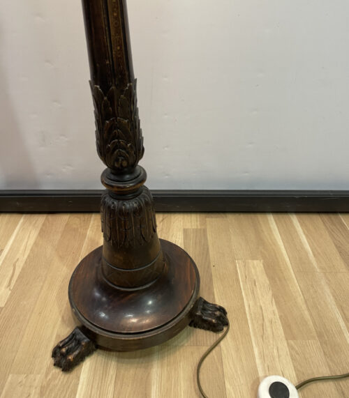 Vintage Stehlampe mit Holzfuss und Stoffschirm