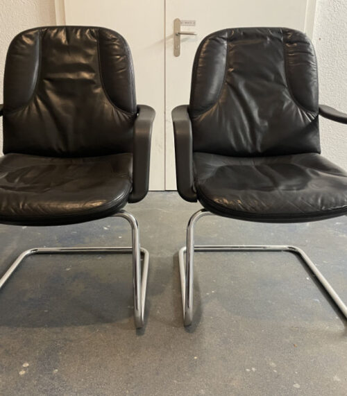 Erosuisse 2er Set Echtleder Armlehnen Stühle mit Chromstahl