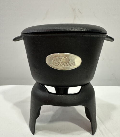 Vintage Fondue Set aus Gusseisen mit Brenner und Deckel ca. 1970er Jahre