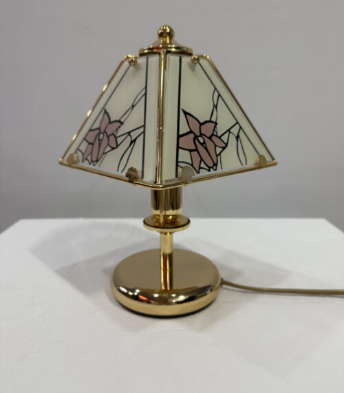 Vintage Tischlampe mit Messingfuss und floralen Glaselementen 1980er Jahre