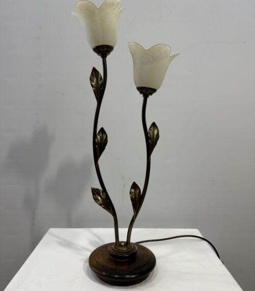 Vintage Jugendstil Tischlampe mit floralen Glasblüten und Holzfuss ca. 1980er Jahre