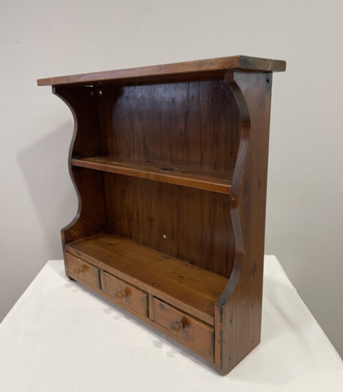 Vintage Landhaus Wandregal aus Massivholz mit Schubladen ca. 1970er Jahre