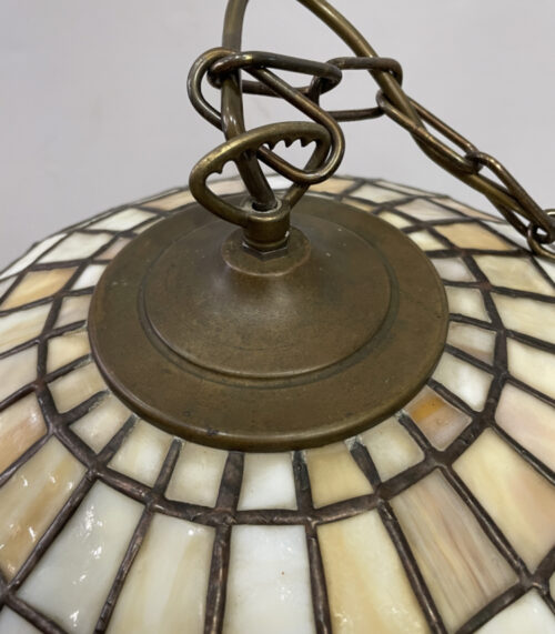 Vintage Tiffany-Stil Deckenlampe aus Glas mit floraler Bleiverglasung ca. 1980er Jahre