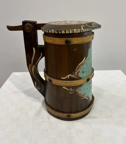 Vintage Humpen aus Holz mit Bauernmalerei