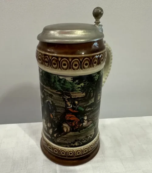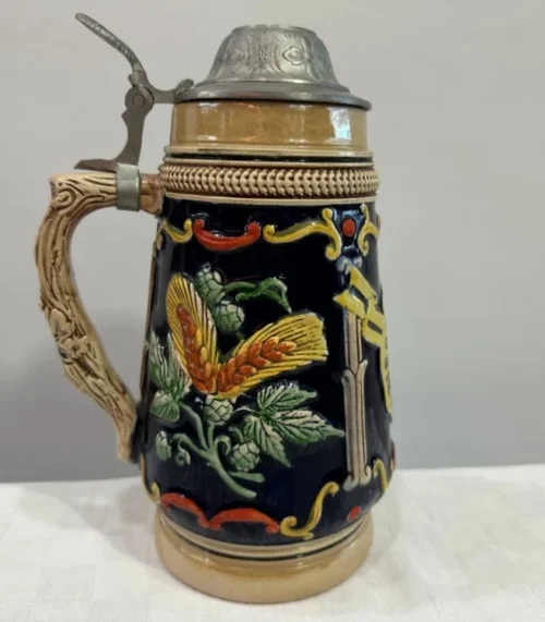 Vintage Keramik Bierkrug / Bierhumpen mit Zinndeckel von 1788