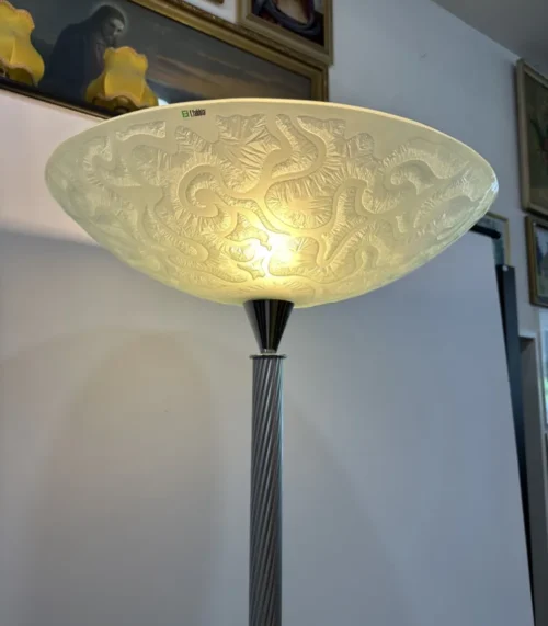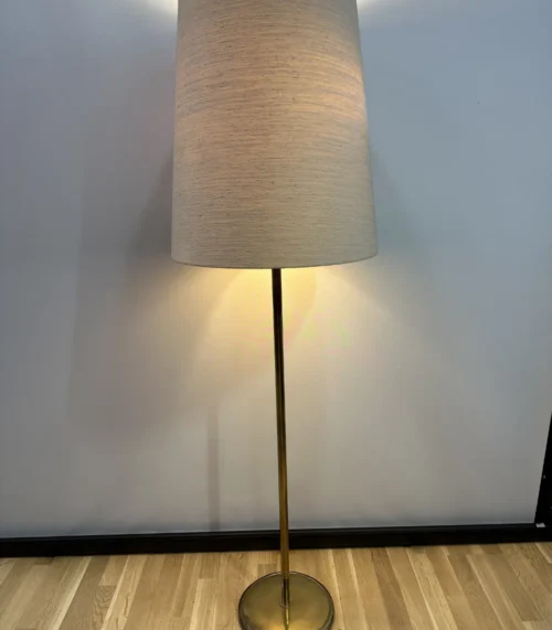 Vintage Stehlampe / Stehleuchte aus Messing mit grossem Lampenschirm